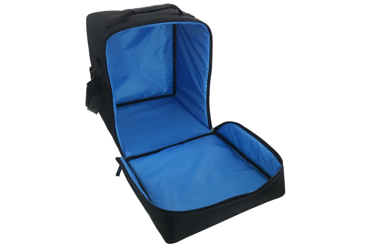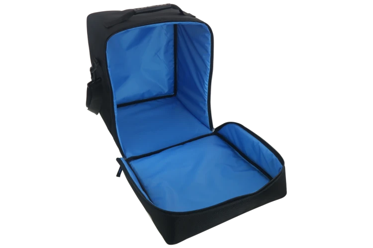 The bag is made to premium standards with high-quality materials. It features foam padding on the walls, a handle, a shoulder strap, four feets, a large pocket for additional accessories, and a large Velcro panel on the front that allows for easy personalization using Velcro patches.