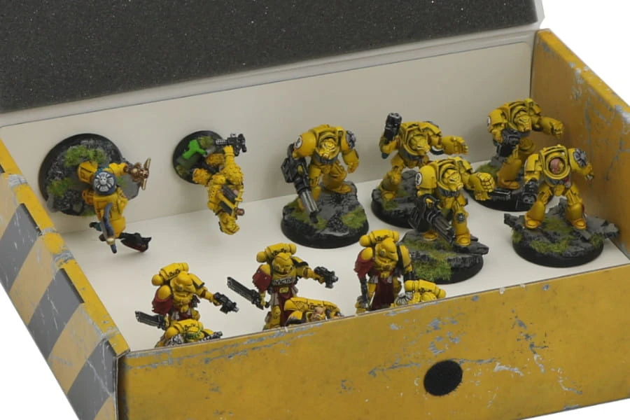 - 1 x 6mm thick foam layer adhered to the inside lid protecting the top of the miniatures;