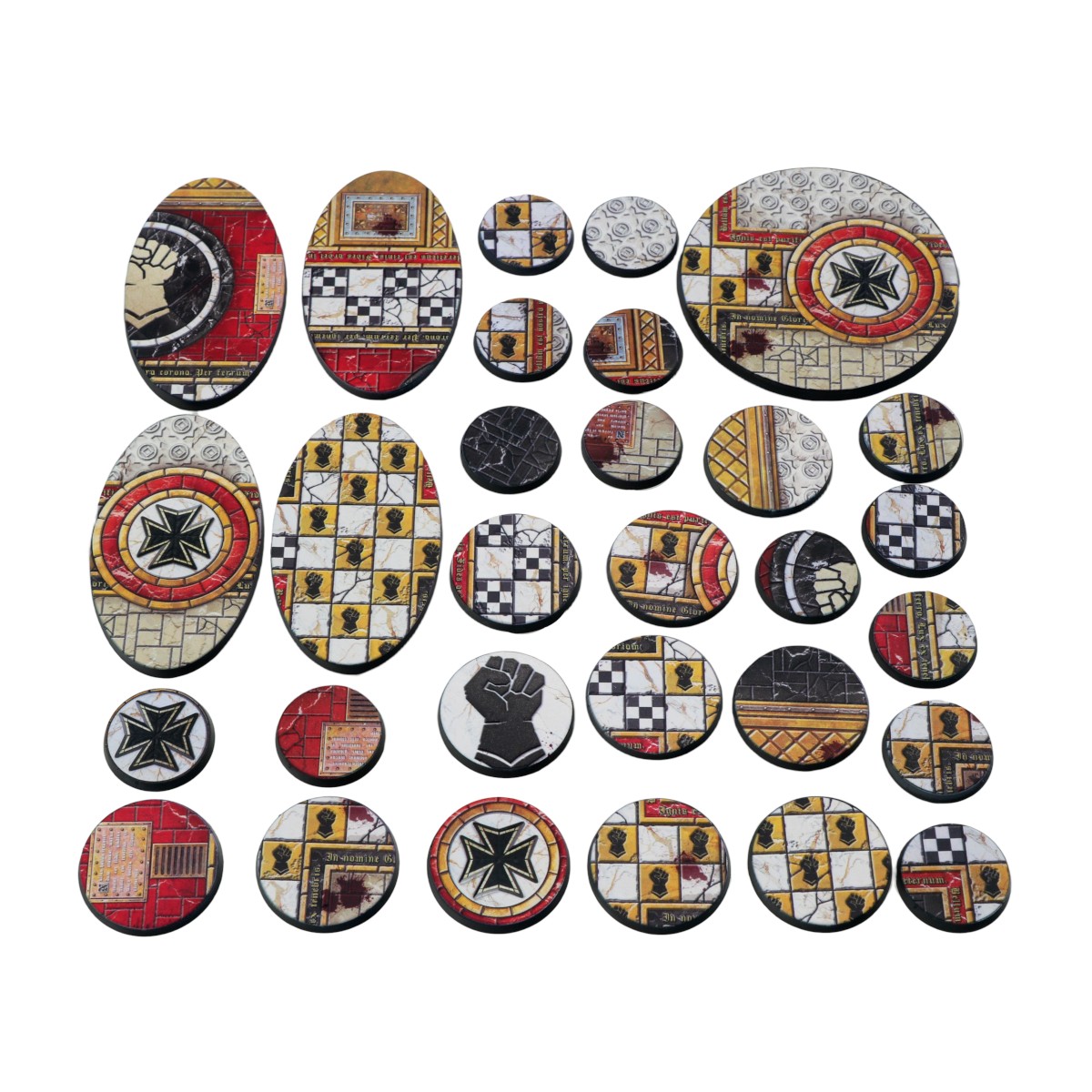 Subtle differences in fracture patterns, stone tone and symbol placement ensure each base feels naturally distinct while remaining visually coherent across squads, heroes and display models.
