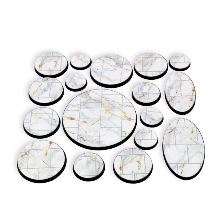 Add a refined, luxurious touch to your miniatures with White Marble Instabases – pre-painted, textured scenic bases featuring a realistic white marble pattern with subtle grey elements and elegant gold veining. These premium bases combine sophisticated style with practical convenience, making them a perfect fit for both futuristic and classic fantasy settings.