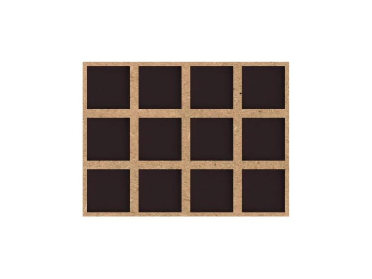 This tray enables you to arrange 12 miniatures on 25mm square bases in a 4 x 3 configuration. Thanks to the gaps between the models, the entire unit takes up the space as if it were placed on 30 x 30mm bases.