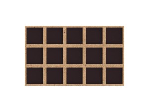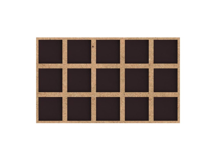 This tray enables you to arrange 15 miniatures on 25mm square bases in a 5 x 3 configuration. Thanks to the gaps between the models, the entire unit takes up the space as if it were placed on 30 x 30mm bases.