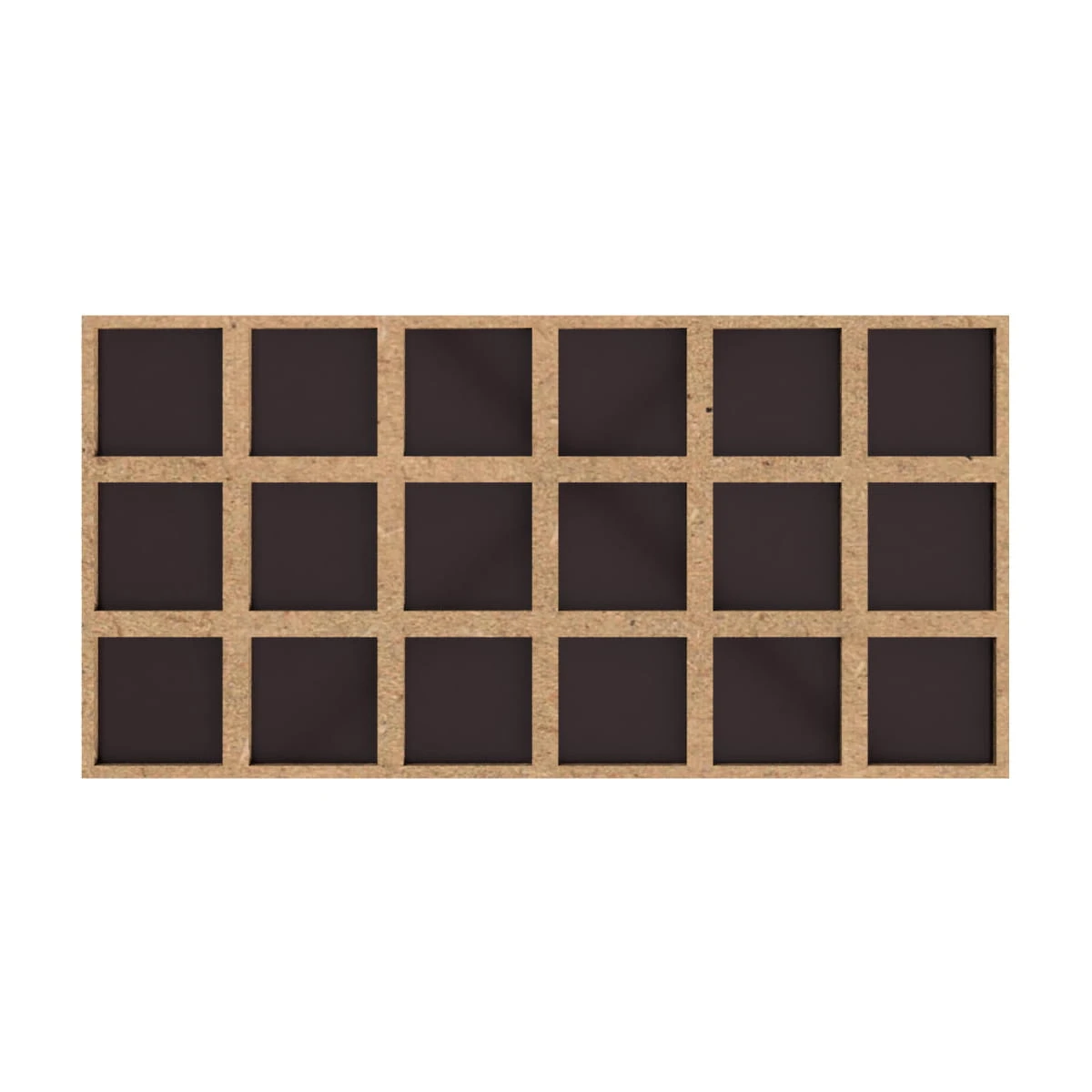 This tray enables you to arrange 18 miniatures on 25mm square bases in a 6 x 3 configuration. Thanks to the gaps between the models, the entire unit takes up the space as if it were placed on 30 x 30mm bases.