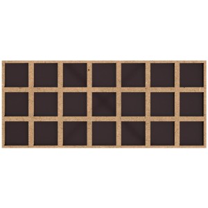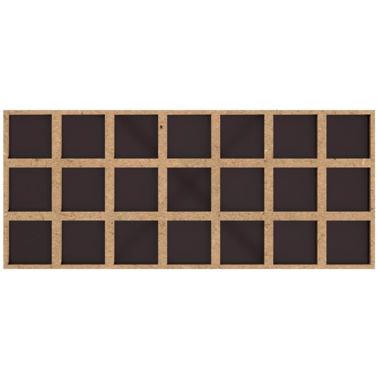 This tray enables you to arrange 21 miniatures on 25mm square bases in a 7 x 3 configuration. Thanks to the gaps between the models, the entire unit takes up the space as if it were placed on 30 x 30mm bases.