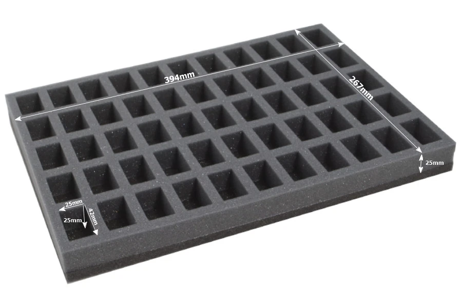 Dimensions of the foam tray: 394mm x 267mm x 31mm (25mm deep space + 6mm thick foam bottom).