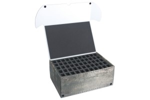 The presented product is a Full-size Mega Box with a set of 5 foam trays, for storing and carrying 275 small miniatures on 20mm or 25mm bases.