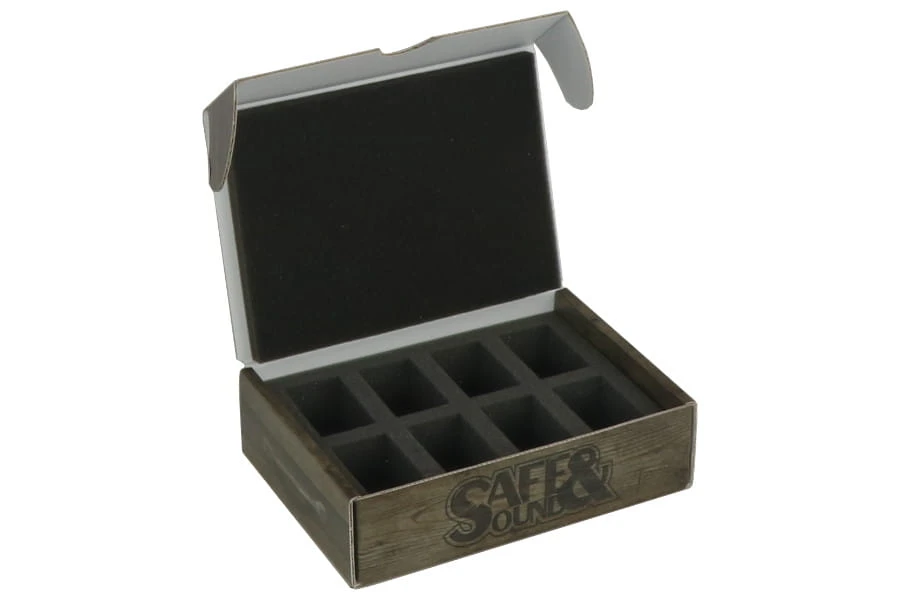 Mini Box with a foam tray for 8 miniatures on 32mm bases.