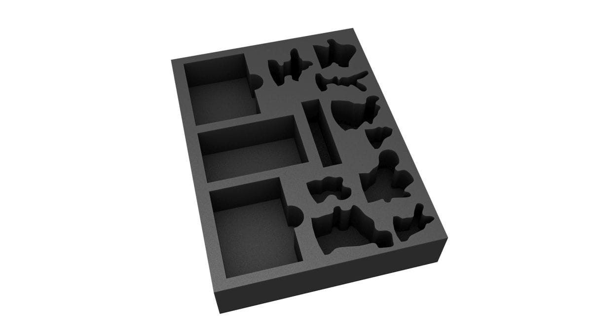 Prezentowany produkt to piankowy wkład do pudełka z gry Warhammer Underworlds: Harrowdeep. Wkład pozwala na bezpieczne zapakowanie, przechowywanie i przenoszenie całej zawartości pudełka. Znajdują się w nim dedykowane otwory na każdy z 9 modeli z zestawu, dwa wycięcia na karty, jedno wycięcia na kostki oraz jedno na żetony. Dodatkowe marginesy na bokach pianki pozwalają na umieszczenie tam znaczników, a pozostawiona przestrzeń nad pianką pozwala na umieszczenie podręcznika oraz planszy do gry.