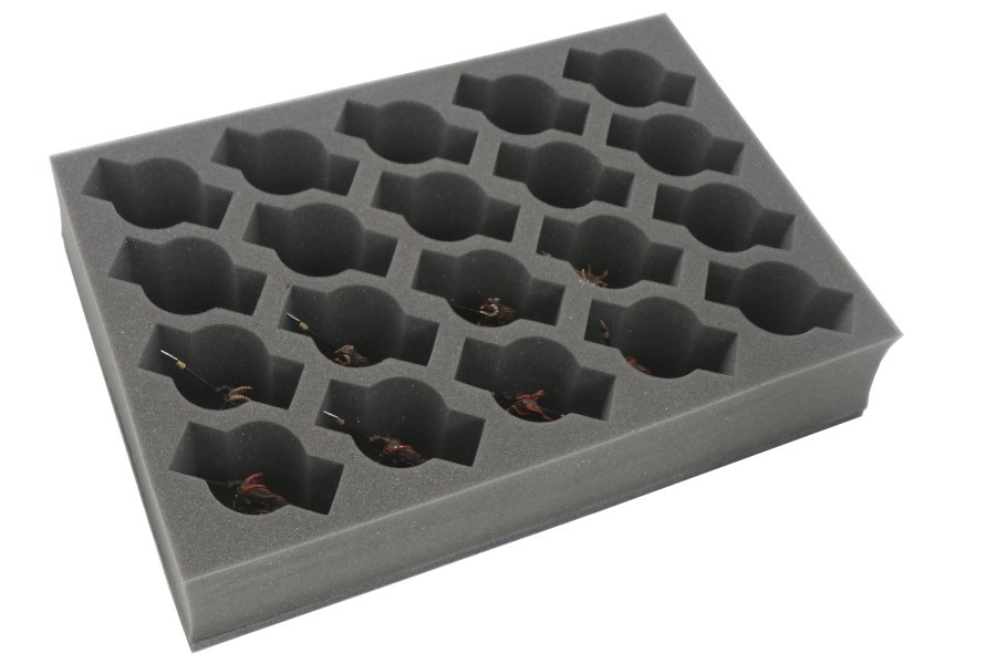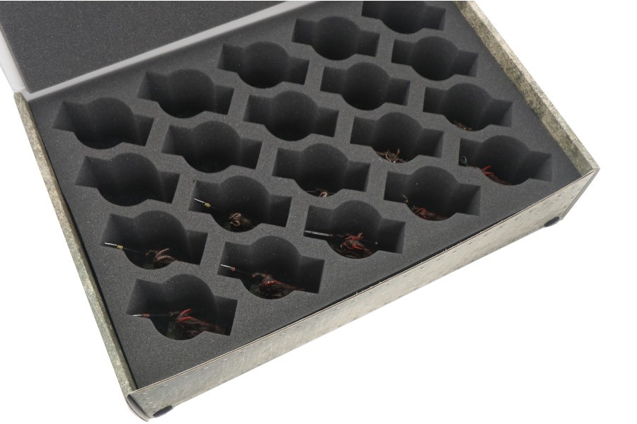 Prezentowany produkt to Pudełko XL z pianką na 20 modeli lekkiej kawalerii lub innych modeli na podstawkach 40mm. Wycięcia w pudełku pomieszczą podstawki 25mmx50mm, 25x70mm oraz podstawki owalne 35x60mm.