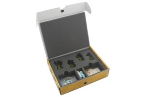 - pianki z wycięciami przygotowanymi na modele drużyny Ylthari's Guardians oraz przegródkami na karty oraz kostki do gry;